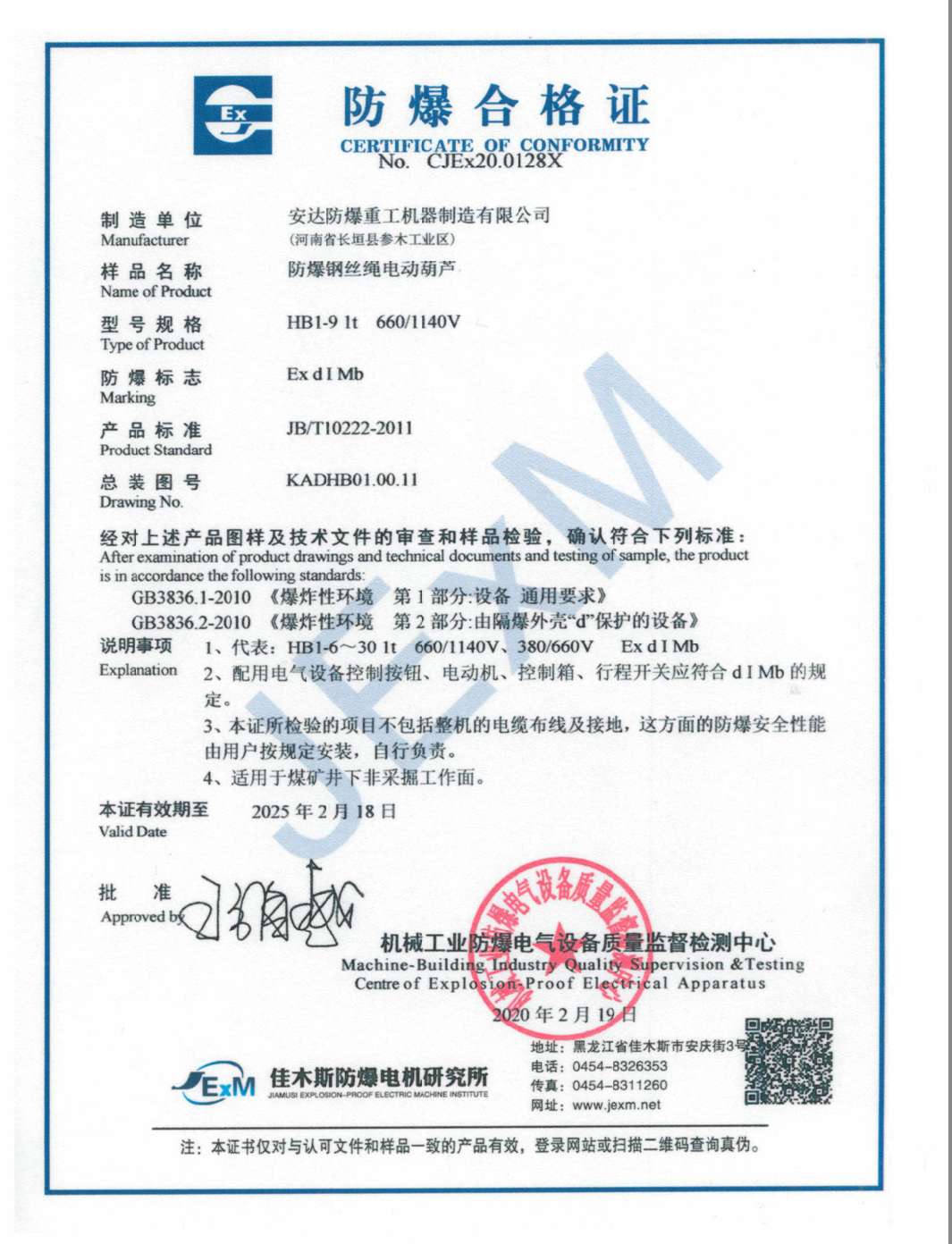 » 防爆鋼絲繩電動葫蘆 防爆合格證