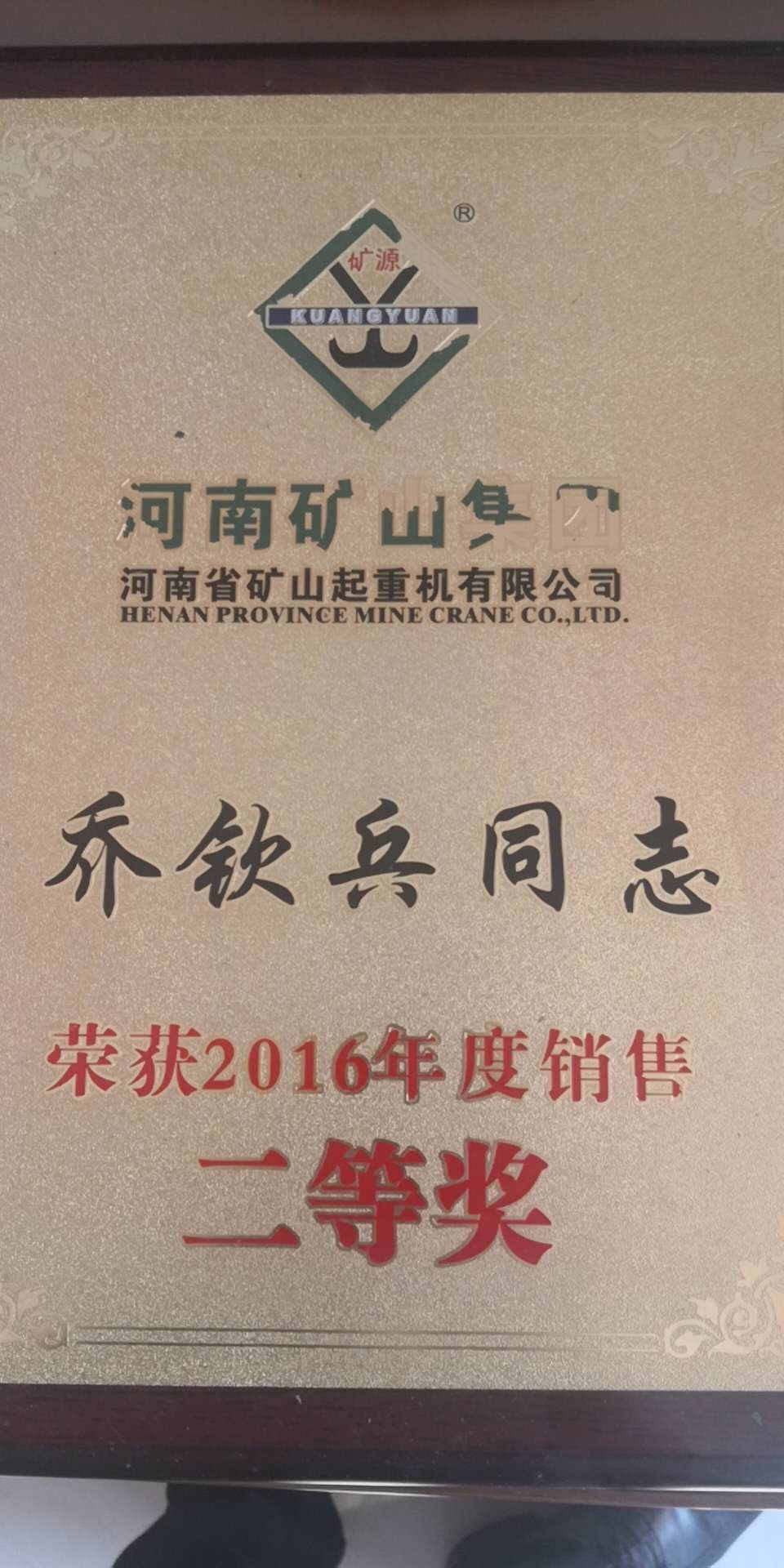 » 2016年銷售二等獎