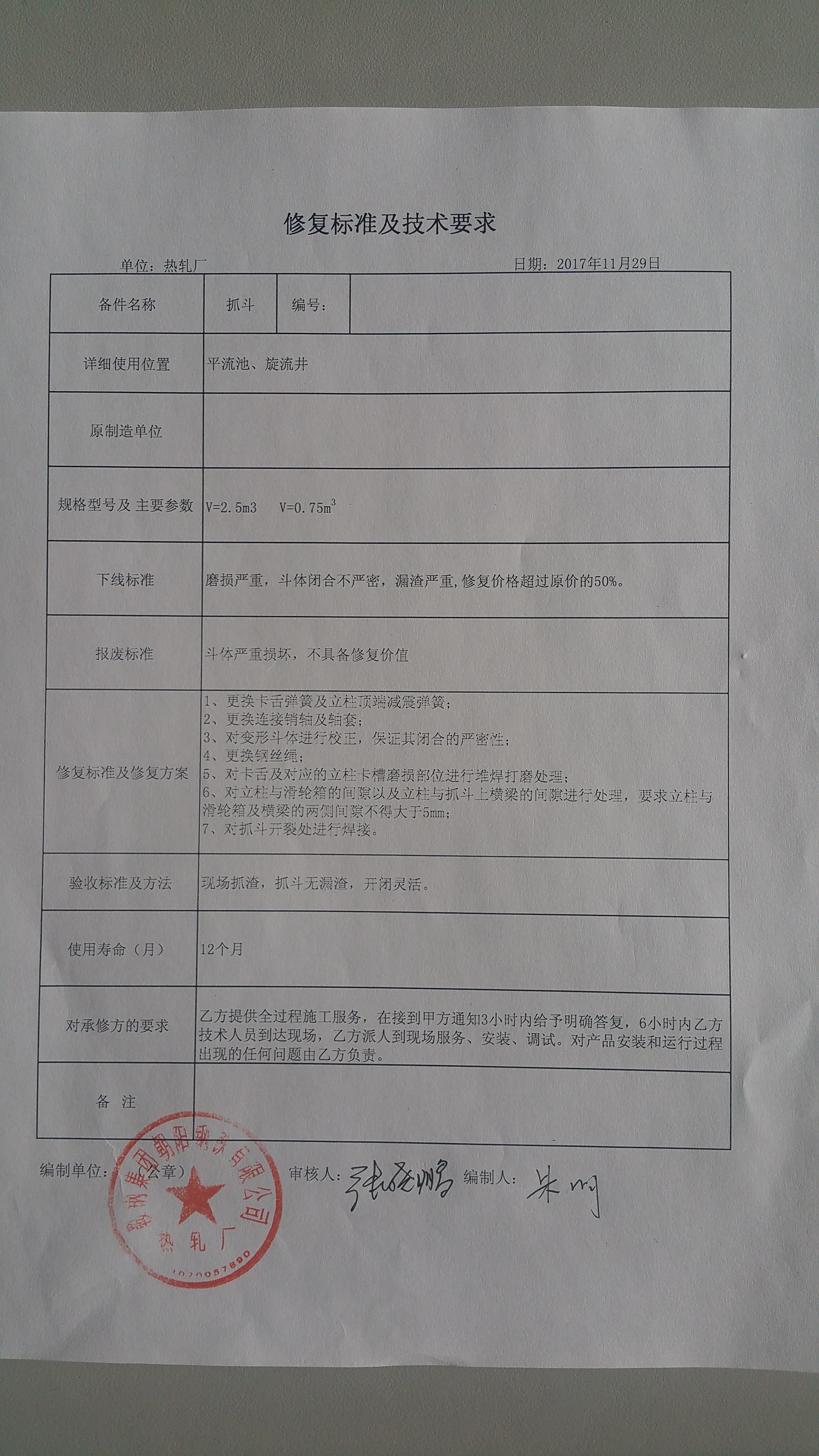 5.4評估業績:要求提供近三年內在線運行可核實的新品或修複抓鬥或吊具類的相關合同(相關合同複印件1份)。
