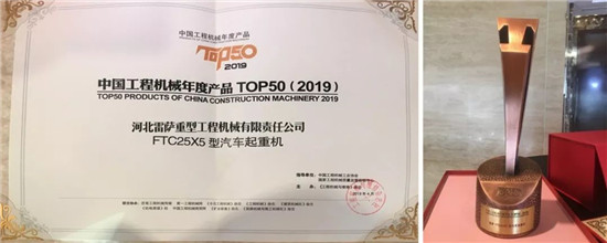 2019年4月2日,備受關注的“2019工程機械產品發展(北京)論壇暨中國工程機械年度產品TOP50頒獎典禮”在京隆重舉行。憑借卓越的性能和良好的市場表現,雷薩FTC25X5汽車起重機在激烈的競爭中脫穎而出,成功榮獲“中國工程機械年度產品TOP50(2019)”大獎。產品獲獎,是社會和行業對雷薩重機綜合實力的肯定,同時也是雷薩重機在國內工程機械領域領先地位的有力印證。