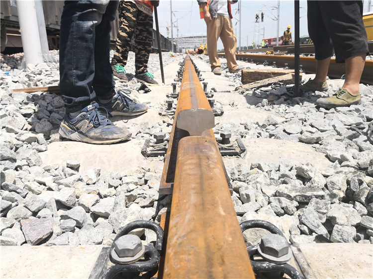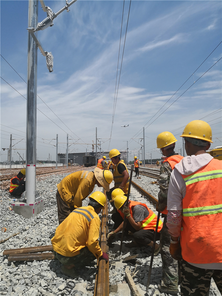 中zhong鐵tie四si局ju作zuo為wei南nan站zhan承cheng軌gui層ceng施shi工gong單dan位wei,為wei誓shi保bao聯lian調tiao聯lian試shi關guan鍵jian節jie點dian工gong期qi,中zhong鐵tie四si局ju鄭zheng州zhou南nan站zhan項xiang目mu以yi優you先xian施shi工gong鄭zheng萬wan場chang保bao通tong段duan鄭zheng萬wan正zheng線xian部bu分fen為wei原yuan則ze,有you重zhong點dian的de同tong步bu實shi施shi,超chao常chang規gui在zai鄭zheng萬wan場chang保bao通tong段duan(100*668平方)設立6個分部,現場2000餘名施工人員和150餘台機械,24小時兩班作業施工,以集團會戰確保工期。