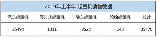 根據中國工程機械工業協會工程起重機分會對起重機生產企業進行的數據統計,2019年上半年的起重機銷售數據已出爐,彙總成一張表格: