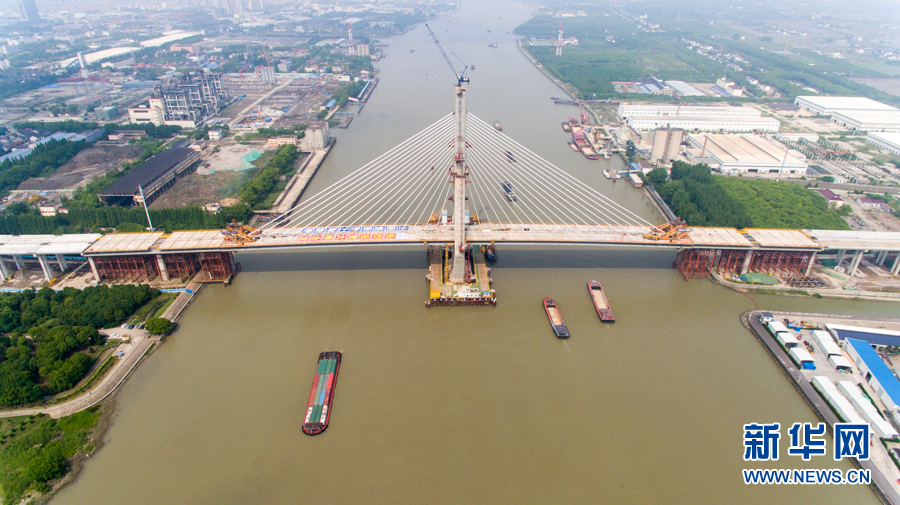 黃浦江上第13座大橋實現全橋貫通。新華網羅沛鵬 攝