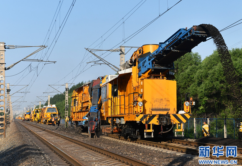 新華網沈陽6月4日電(唐曉瑭)近日,中國鐵路沈陽局集團有限公司全麵啟動京哈線集中修施工作業。為保障集中修順利開展,沈陽工務機械段抽調9個車間2000餘名職工、78台大型養路機械投入施工“會戰”,計劃完成線路清篩76公裏、更換混凝土軌枕15.8公裏、更換鋼軌69公裏。