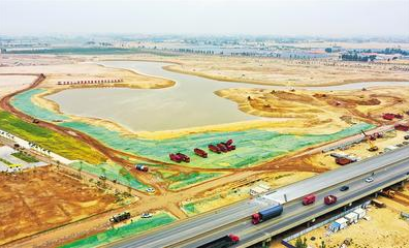 “目前,主河槽疏浚工程已完成,從6月7日起開始生態補水。不久,二期河道就會出現碧波蕩漾的美景。”石家莊市滹沱河生態修複二期工程前線指揮部辦公室主任左晗偉介紹,目前工程共投入機械2240台、施工人員3616人,已栽植喬木2萬株,岸坡防護已完成27.38%,興安、太極、深澤3大湖區已開挖成型,生態補水已到達太極湖區域。工程完工後,水生態修複麵積將達467公頃。