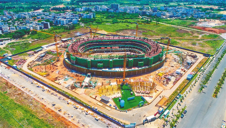 據了解,海口五源河文體中心二期項目建設內容包括體育館、遊泳館和網球館,其中體育館建設總投資10.9億元,可容納1.8萬名觀眾就座,具備舉辦全運會等全國性以及單項國際比賽條件。海南日報記者 張茂 攝