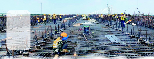 7月23日12時,由中鐵十四局四公司承建的濟南大東環轉體橋2*60T構現澆梁開始進行混凝土澆築,曆時約48個小時,預計澆築混凝土2567立方,標誌著轉體橋上部結構施工取得關鍵性進展,為年底全線通車打下堅實基礎。
