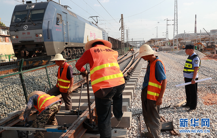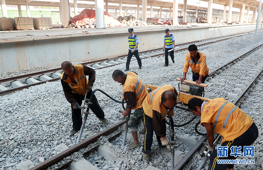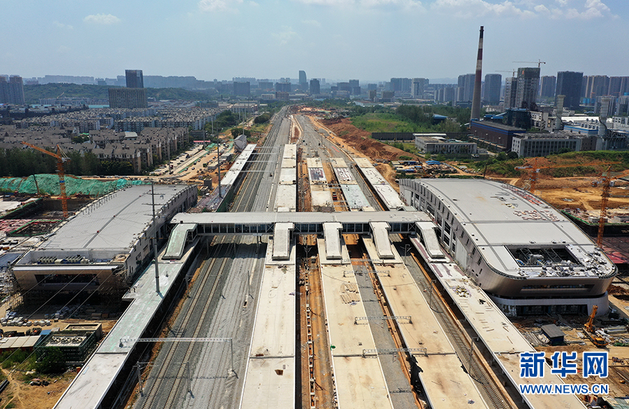 武漢東站主體工程近日已基本完成,千餘名建設者冒著高溫抓緊進行鋪軌、電氣化設施安裝、站房裝飾裝修等施工,計劃年底通車。