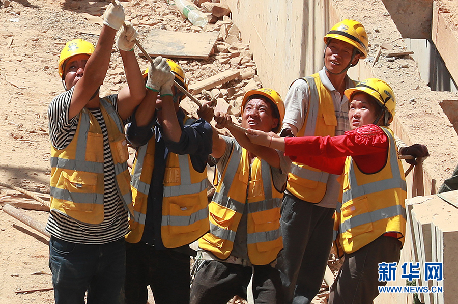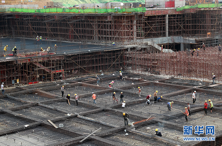 圖為武漢東站建設者冒著高溫加緊施工。新華網發 趙軍攝