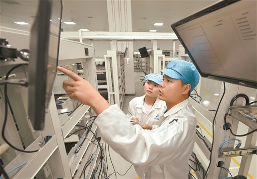 9月14日,湖南湘江新區湘江鯤鵬計算產業軟硬件生產線,工人在對PC機拷機進行測試。目前,該生產車間的湖南自主品牌服務器和PC機的日產能分別達到300台、1000台。