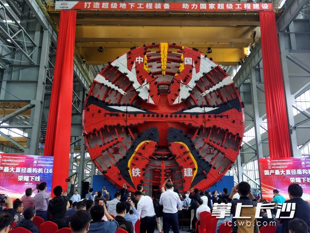長沙晚報掌上長沙9月27日訊(全媒體記者 伍玲 通訊員 胡清)沒有最大,隻有更大。自主研發國產盾構機以來,鐵建重工一次次挑戰極限,突破自我,從4米、8米、到12米,再到16米。今日,一台最大開挖直徑達16.07米的超大直徑盾構機在中國鐵建重工集團長沙第一產業園下線。這台“巨無霸”盾構機整機長150米,總重量4300噸,是我國迄今研製的最大直徑盾構機。