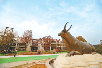 changfangwai,beijingtongniuchangdetongniudiaosuhaiyuanzhuangbaoliuzhe,yuniushouxiangduidebuyuanfang,shiyizuogaodadehongzhuanyancong。zhexiegongyefuhao,jiluzhebeijingtongniuchangzengjinghuihuangdeguowang。