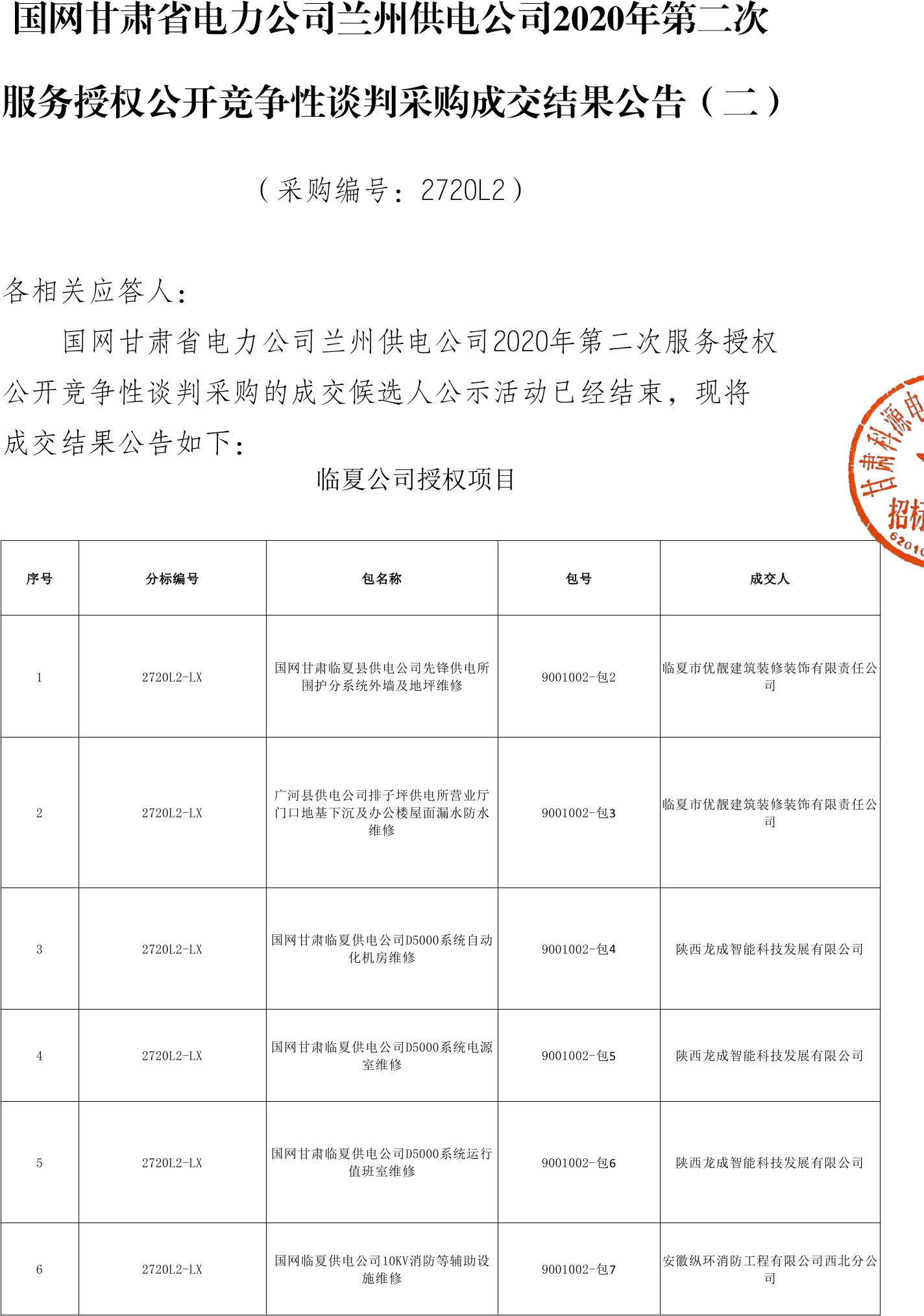 移動版:國網甘肅省電力公司蘭州供電公司 2020 年第二次服務授權公開競爭性談判采購成交結果公告(二)變更