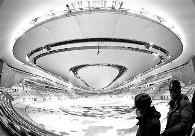 國家速滑館項目負責人介紹,國家速滑館冰麵采用分模塊控製單元,可以將冰麵劃分為若幹區域,根據不同項目分區域、分標準進行製冰。平時可接待超過2000名市民同時開展冰球、速度滑冰、花樣滑冰、冰壺等所有冰上運動。