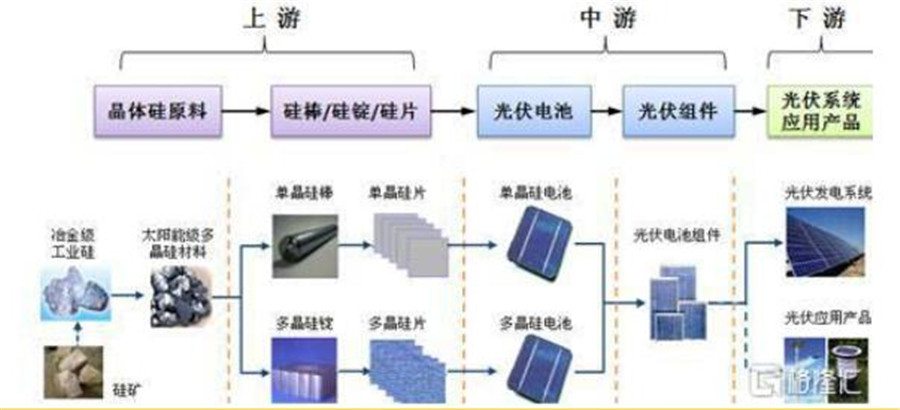 簡單的說,就是將矽礦進行提取產生矽粉,由多晶矽工廠進行化工產生多晶矽,多晶矽的用途主要有兩種。