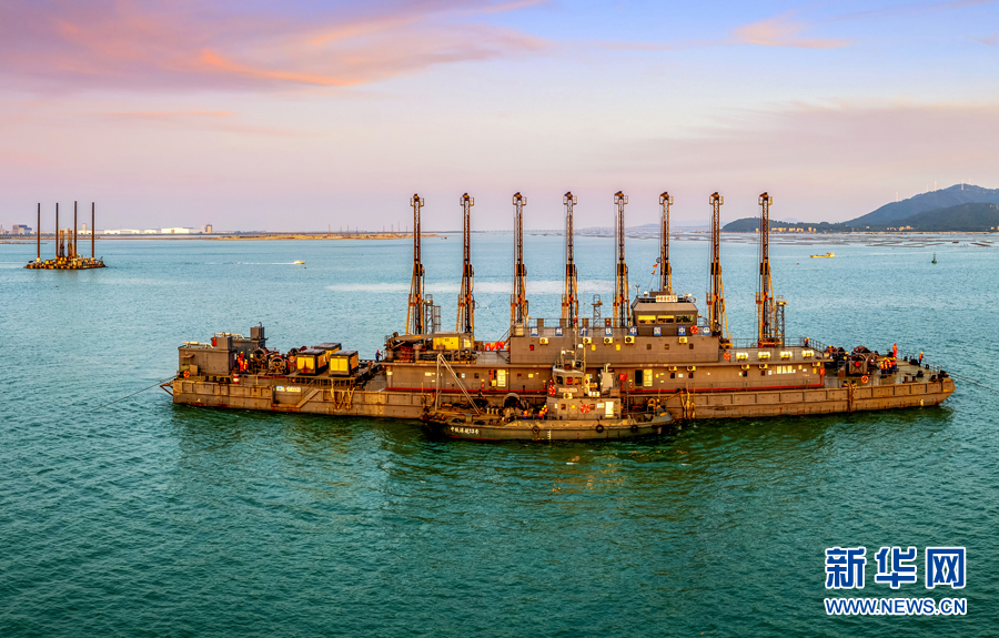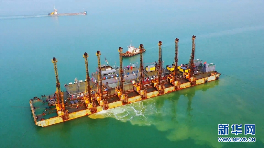 近日,據中鐵廣州工程局集團消息,目前已完成疏浚工程量過半。圖為工作人員在進行作業。新華網發(曾鎧鋼攝)