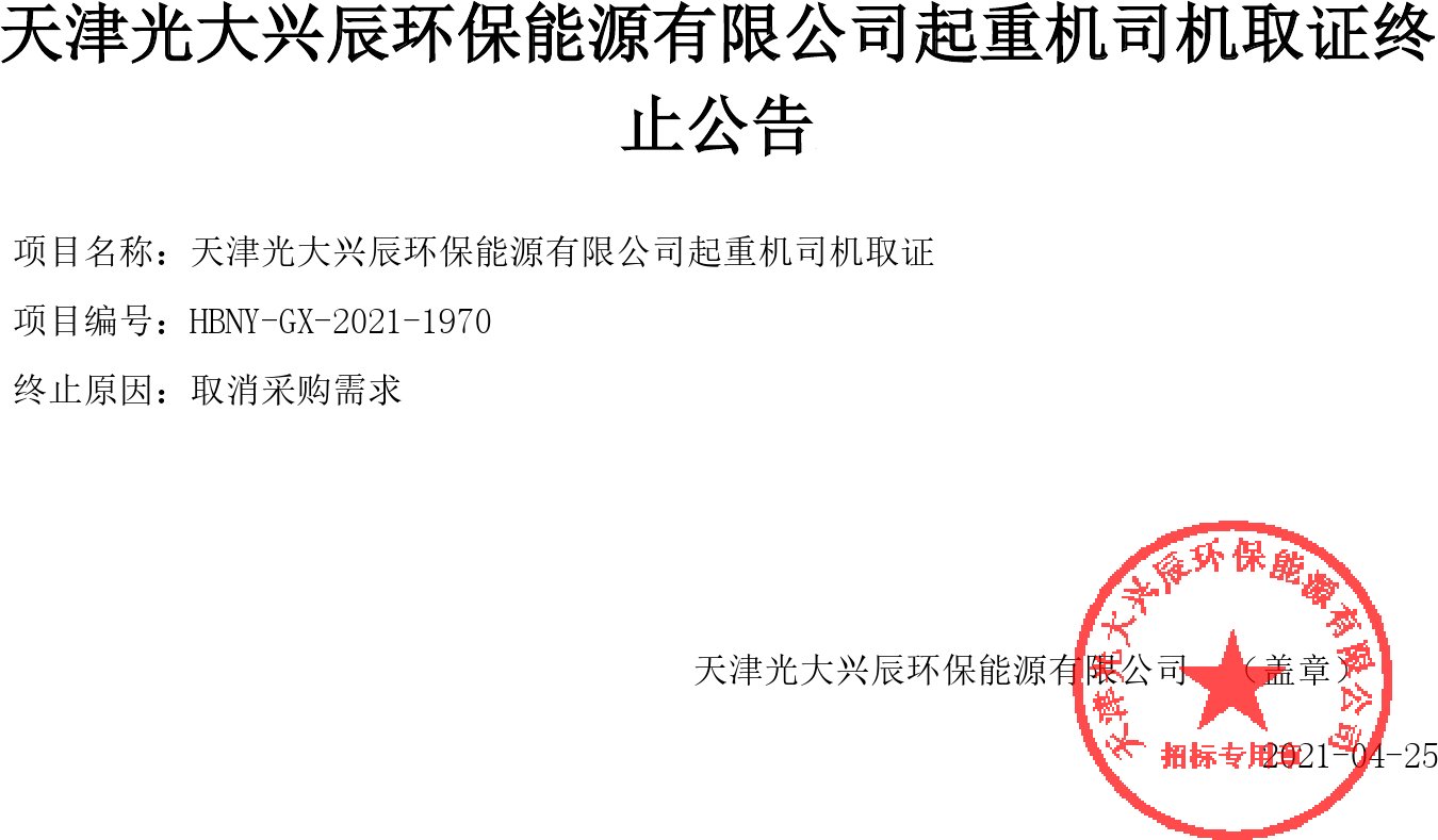 移動版:天津:天津光大興辰環保能源有限公司起重機司機取證終止公告
