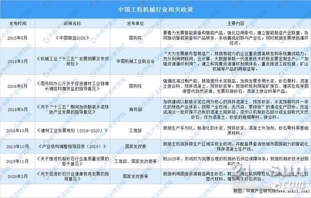 工程機械行xing業ye是shi我wo國guo國guo民min經jing濟ji建jian設she的de重zhong要yao支zhi柱zhu產chan業ye,是shi裝zhuang備bei製zhi造zao業ye的de重zhong要yao組zu成cheng部bu分fen。我wo國guo頒ban布bu了le一yi係xi列lie有you利li於yu工gong程cheng機ji械xie行xing業ye發fa展zhan的de產chan業ye政zheng策ce,為wei行xing業ye發fa展zhan提ti供gong了le有you力li支zhi持chi。例li如ru,國guo務wu院yuan發fa布bu的de《中國製造2025》指出,著力發展智能裝備和智能產品,鼓勵發展綠色循環經濟等。