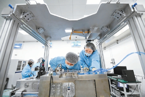 日前,位於北京經濟技術開發區的聚束科技(北京)有限公司科研人員正在實驗室工作。記者 和冠欣攝