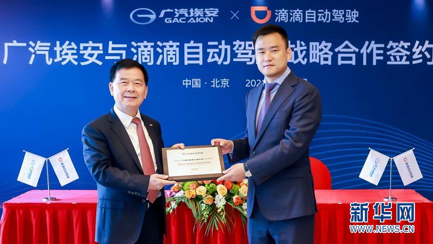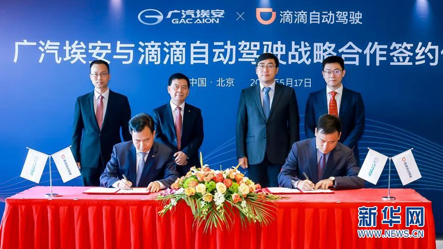 5月17日,廣汽埃安新能源汽車有限公司宣布與滴滴旗下自動駕駛公司達成戰略合作。廣汽集團董事長曾慶洪與滴滴出行董事長兼CEO程維,共同見證簽約儀式。廣汽埃安總經理古惠南與滴滴出行CTO兼自動駕駛CEO張博,分別代表廣汽埃安和滴滴自動駕駛簽署協議。