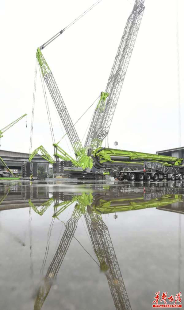 會展中心的中央廣場上,一台高178米、額定起重量220噸的“巨型鐵獸”成為本次展會的“鎮館之寶”。這台來自中聯重科的ZCC13000履帶起重機是第一個進入展館的參展產品,由40多台平板車同時裝運進來。