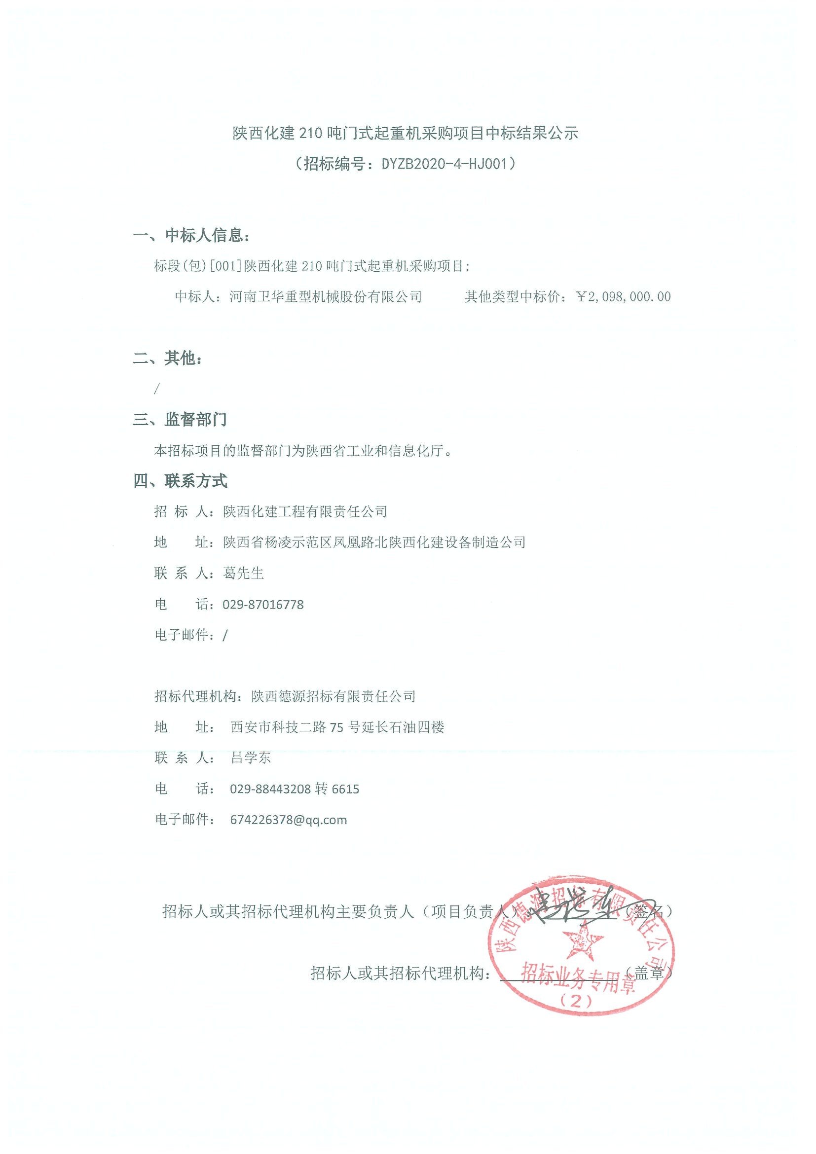 移動版:陝西:陝西化建210噸門式起重機采購項目中標結果公示