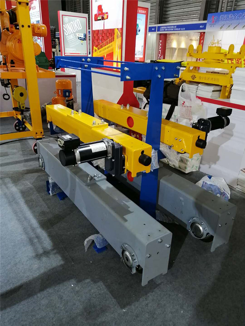 我公司生產的科尼式大、小車端梁采用材質Q345方管製作,再經大型數控鏜床(為加工科尼端梁訂製)一次加工完成,加工精度高,保證整機現場安裝完畢後不會出現啃軌及三條腿現象(基礎不平情況除外),產品性能完全符合歐洲物料搬運協會FEM等相關標準。與此端梁配套的車輪材質為球墨鑄鐵,球磨鑄鐵的塑性、韌性、強度都優於合金碳鋼,所以此款車輪耐磨性好,強度和壽命是普通車輪的幾倍。 與此端梁配套的三合一電機為高性能變頻電機,配置有過熱保護,接電持續率40%,絕緣等級F級,防護等級IP55,鋁合金外殼散熱好,標配航空插頭,可實現大小車運行平穩、定位精準。