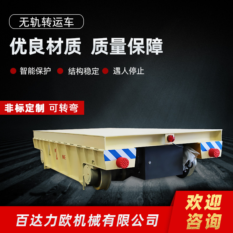 集安電動平車生產供應商—百達力歐公司製造,電動平車,又稱電動平板車、電平車、台車、過跨車、電動軌道車、地爬車等,是一種廠內有軌電動運輸車輛,首先它是一種軌道型運輸車輛,需要在地麵上鋪設軌道,軌道一般為工字型麵接觸道軌;其次它是電驅動車輛,在電機減速機驅動下自動運行,再次它是一種平板車,台麵平整無廂蓋,特殊情況下也可以是非平麵但無廂蓋,車體無方向盤隻有前進後退方向(即使轉彎也城靠軌道轉彎)。此種車輛具有結構簡單、使用方便、承載能力大、不怕髒不怕砸、維護容易、使用壽命長等特點,因其方便、壯實、經濟、實用、易清理等諸多優點,成為企業廠房內部及廠房與廠房之間短距離定點頻繁運載重物的常用運輸工具。