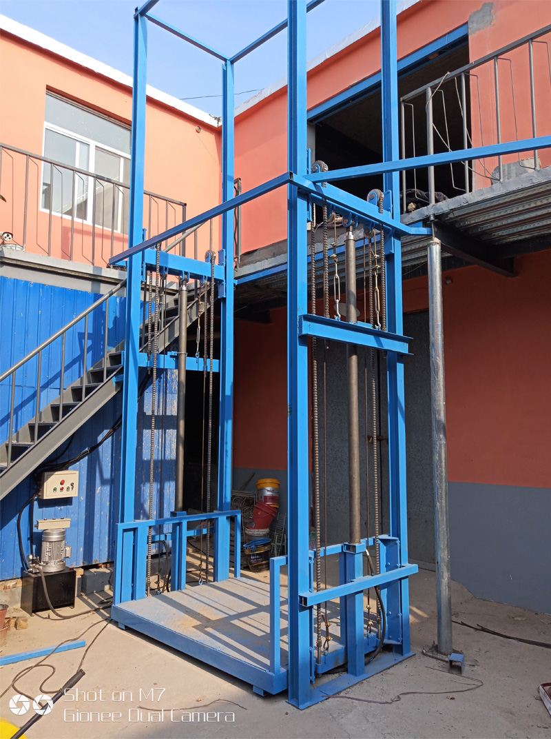 液壓升降貨梯用於建築物層高間運送貨物的專用液壓升降台產品主要用各種工作層間貨物上下運送;立體車庫和地下車庫層高間汽車舉升等。產品液壓係統設置防墜、超載安全保護裝置,各樓層和升降台工作台麵均可設置操作按鈕,實現多點控製。產品結構堅固,