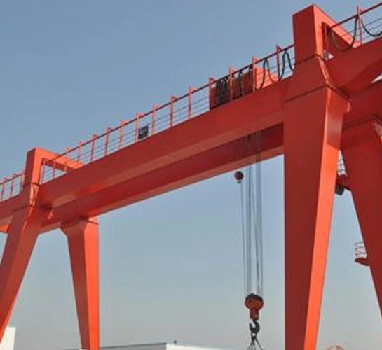 它的金屬結構像門形框架,承載主梁下安裝兩條支腳,可以直接在地麵的軌道上行走,主梁兩端可以具有外伸懸臂梁。
