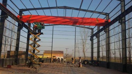 橋式起重機是橫架於車間、倉cang庫ku和he料liao場chang上shang空kong進jin行xing物wu料liao吊diao運yun的de起qi重zhong設she備bei。由you於yu它ta的de兩liang端duan坐zuo落luo在zai高gao大da的de水shui泥ni柱zhu或huo者zhe金jin屬shu支zhi架jia上shang,形xing狀zhuang似si橋qiao。橋qiao式shi起qi重zhong機ji的de橋qiao架jia沿yan鋪pu設she在zai兩liang側ce高gao架jia上shang的de軌gui道dao縱zong向xiang運yun行xing,可ke以yi充chong分fen利li用yong橋qiao架jia下xia麵mian的de空kong間jian吊diao運yun物wu料liao,不bu受shou地di麵mian設she備bei的de阻zu礙ai。它ta是shi使shi用yong範fan圍wei最zui廣guang、數量最多的一種起重機械。