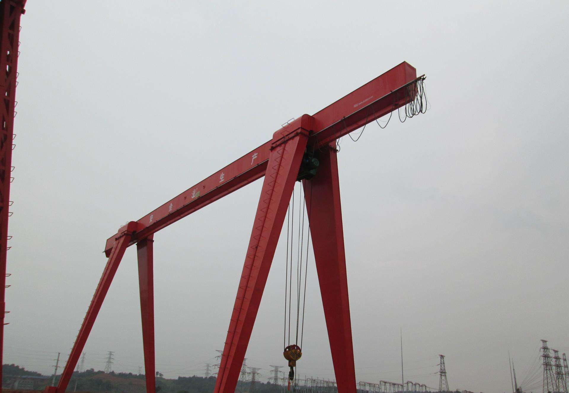 這種起重機多采用箱型式和桁架式結構,用途*廣泛。可以搬運各種成件物品和散狀物料,起重量在100噸以下,跨度為4~39米。用抓鬥的普通門式起重機工作級別較高。普通門式起重機主要是指吊鉤、抓鬥、電磁、葫蘆門式起重機,同時也包括半門式起重機。