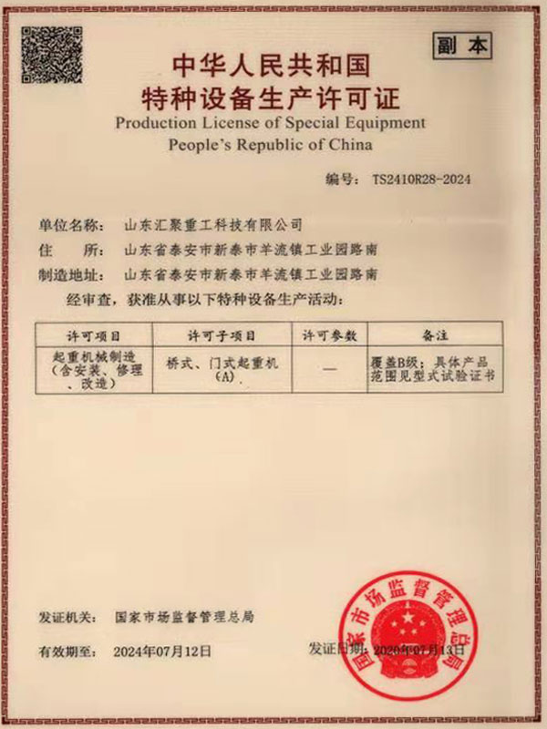 » 特種設備生產許可證