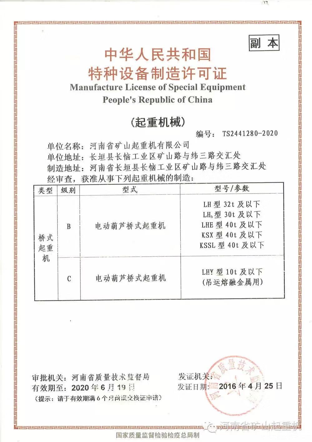 » 中華人民共和國特種設備製造許可證
