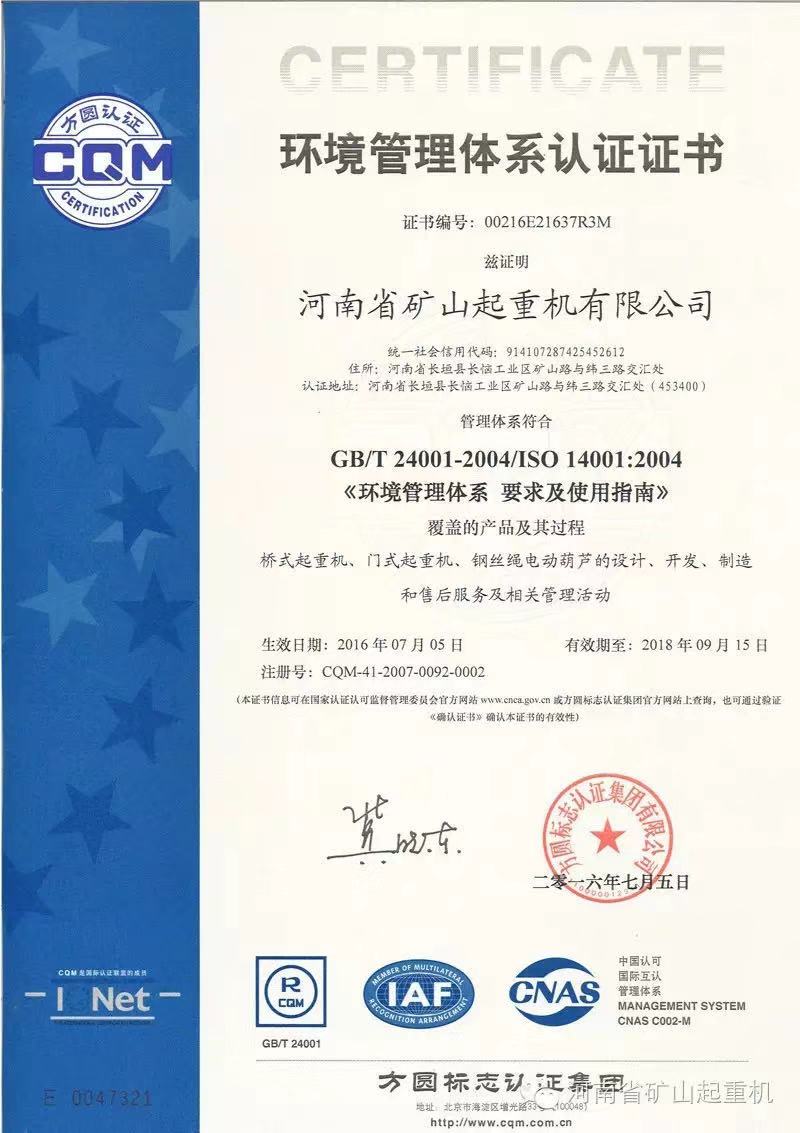 » 環境管理體係認證證書