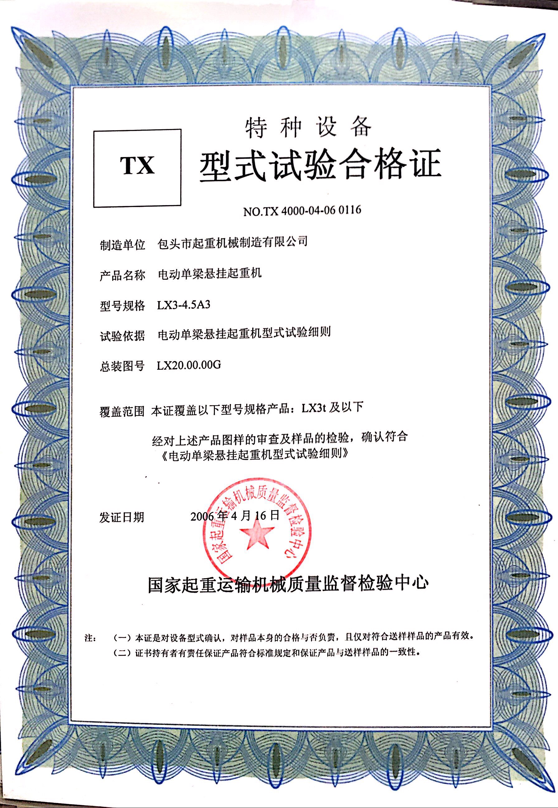 » 特種設備型式試驗合格證