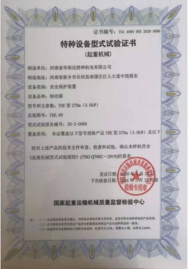 特種設備型式試驗證書