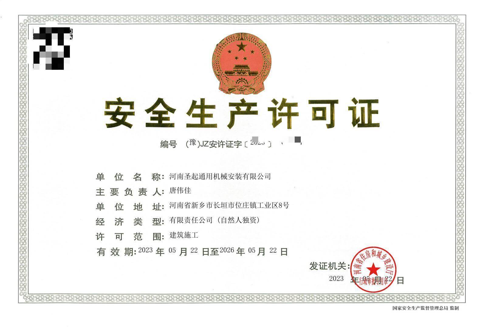 » 安全生產許可證