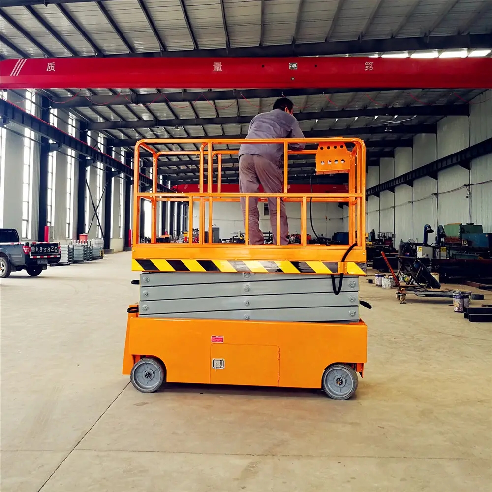 液壓升降機 [1]  主要是通過液壓油的壓力傳動從而實現升降的功能,它的剪叉機械結構,使升降機起升有較高的穩定性,寬大的作業平台和較高的承載能力,使高空作業範圍更大、並適合多人同時作業。它使高空作業效率更高,安全更保障。