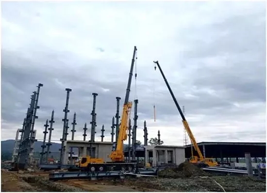 印尼蘇門答臘島最大的發電廠,徐工起重機聯合吊裝鋼結構