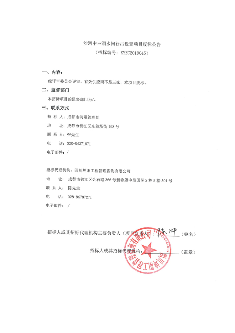 移動版:沙河中三洞水閘行吊設置項目廢標公告