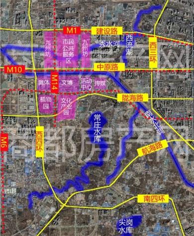 南水北調以南為南核心區,包括鄭州中央文化區及文化創新園區,麵積約2.82平方公裏。