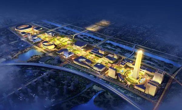 其中,中央文化區占地約1.64平方公裏,規劃“四個中心”,自西向東分別為奧體中心、文博藝術中心、市民活動中心和現代傳媒中心。其中“四個中心”共建設有16個單體建築。
