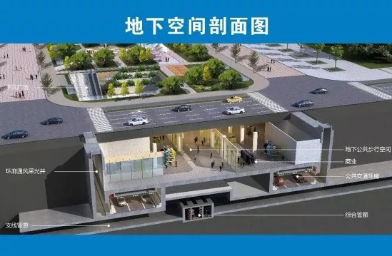 地下三層綜合環廊工程地下空間規劃的以綜合管廊、公共交通環廊和商業設施為主,該工程使整個中央文化區地麵真正形成“無車區”,區域內人車分流,屆時,機動車全部通過地下交通係統運行。