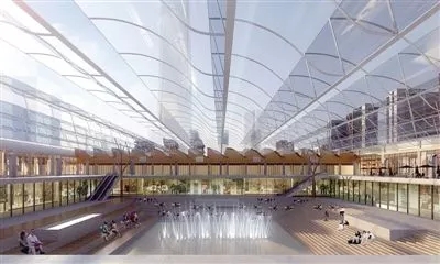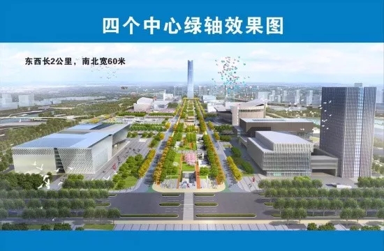 同時地麵規劃則是綠軸廣場,東西長2公裏,南北寬60米。建築群以這條綠軸為界分布,這裏將會形成一條縱向的“城市綠軸”畫卷。