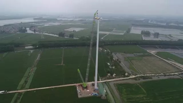 ZCC9800W履帶式起重機上市以來,先後完成了山東煙台風電場、浙江高郵風電場、河北南宮風電場、江蘇風電場等多地的風電機組安裝。其中,ZCC9800W履帶式起重機近日在江蘇作業時,高效地將維斯塔斯首台152米高塔筒機組組裝完成,刷新了中國風電行業塔筒高度新紀錄。