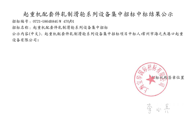 移動版:起重機配套件軋製滑輪係列設備集中招標中標結果公示