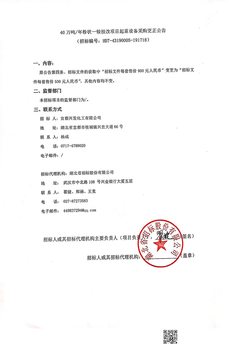 移動版:40萬噸/年粉狀一銨技改項目起重設備采購更正公告