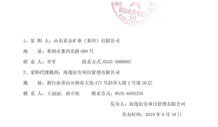 山東黃金礦業(萊州)有限公司汽車起重機、振動給礦機、整流櫃、固定式碎石機采購成交公告