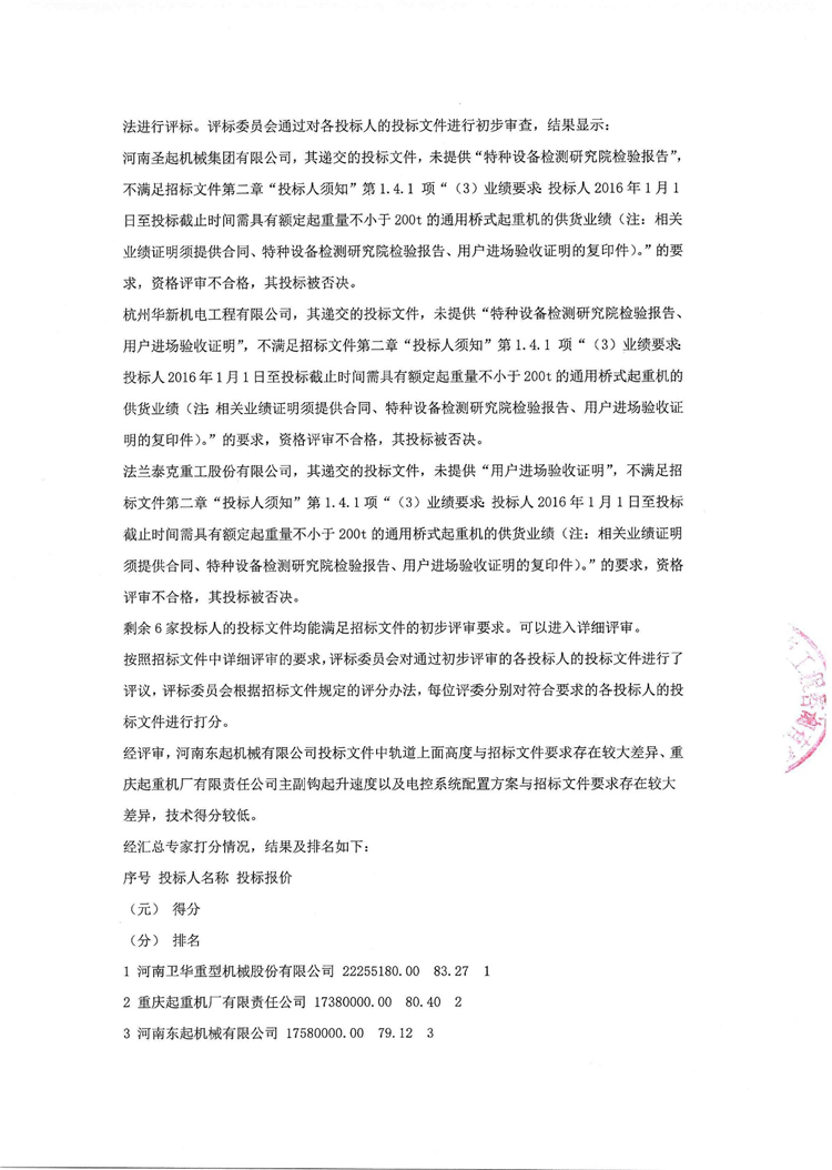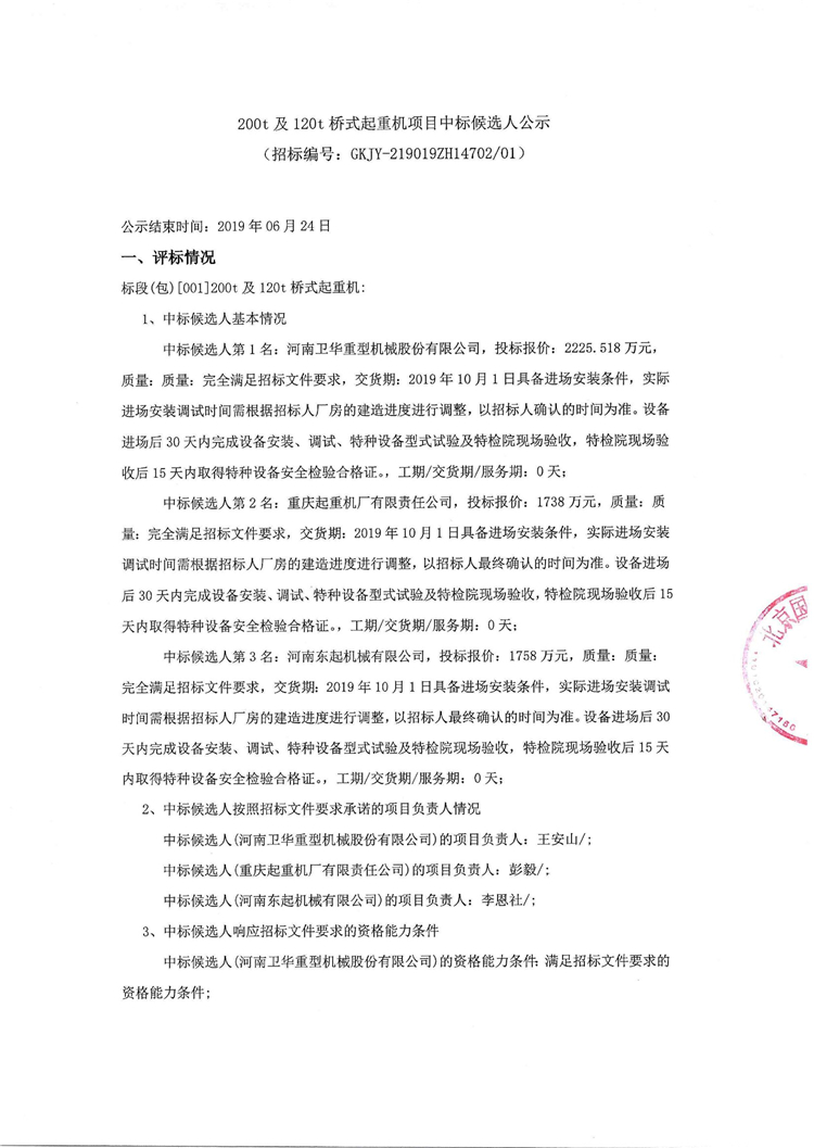 移動版:200t及120t橋式起重機項目中標候選人公示